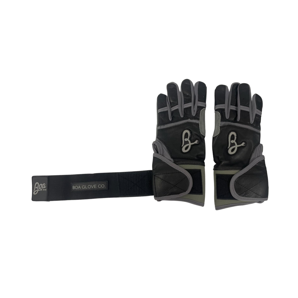 Boa Custom Long Cuff Batting Gloves – Adult Sizes (Black & Grey)